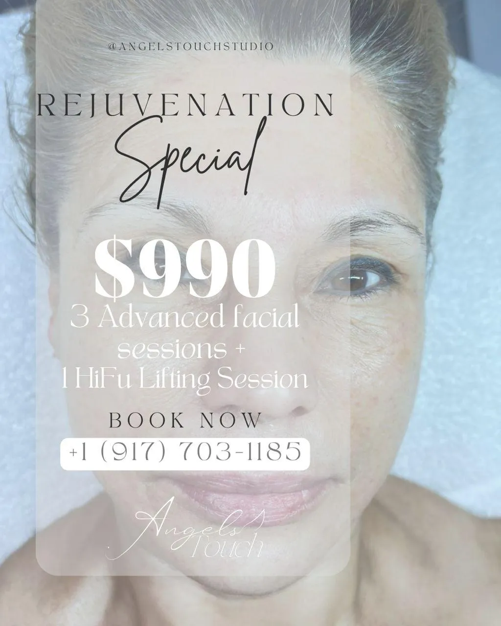 Reset your skin with our Age Reset Pro by Angels Touch, an exclusive full-face rejuvenation package designed to restore firmness, luminosity, and youthful vitality. This premium package includes 3 advanced facial sessions plus 1 HIFU lifting session, combining innovation and aesthetic technology for visible, non-invasive results.